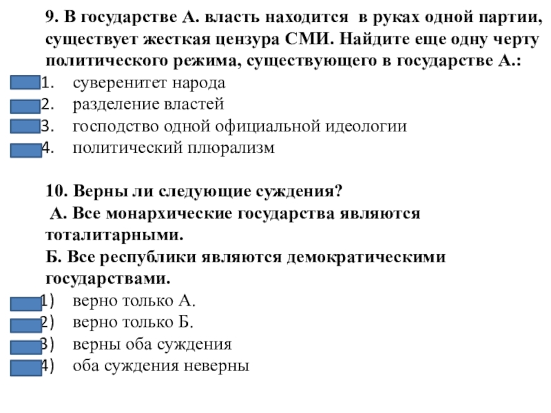 В) Согласны ли вы с мнением, что лучше всего жить в той стране, где все проблемы за индивида решает государство, гарантирует ему работу, стабильные деньги, равенство во всех материальных благах с другими, вмешивается в личную жизнь, наставляя на истинный путь в случае, если человек пытается проявить свою самостоятельность? Свой ответ обоснуйте.