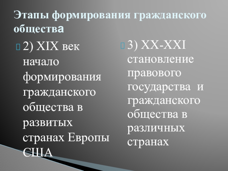 3) XX-XXI становление правового государства и гражданского общества в различных странах