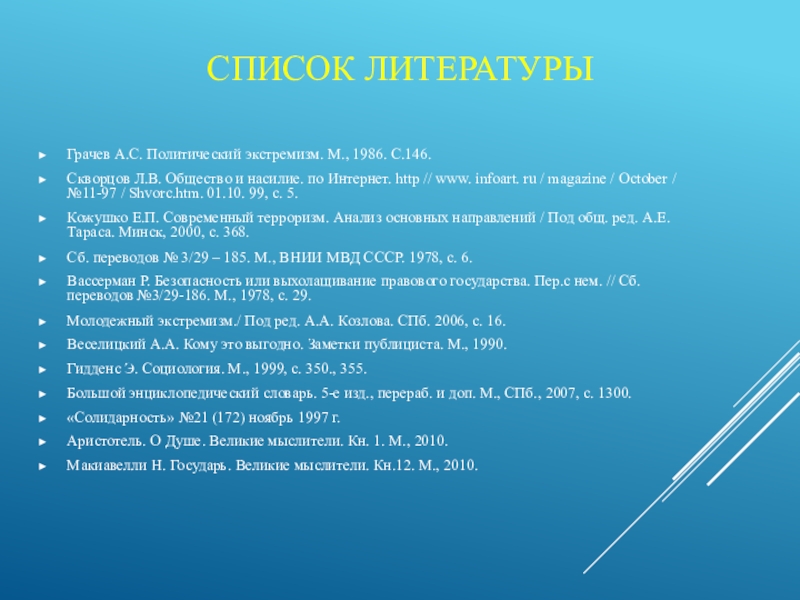 Грачев А.С. Политический экстремизм. М., 1986. С.146.