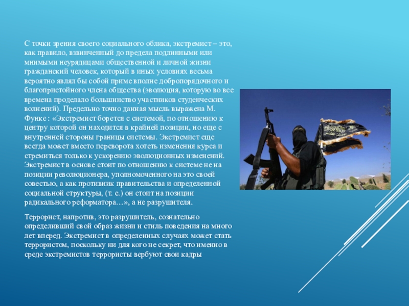 Слайд 5С точки зрения своего социального облика, экстремист – это, как правило,