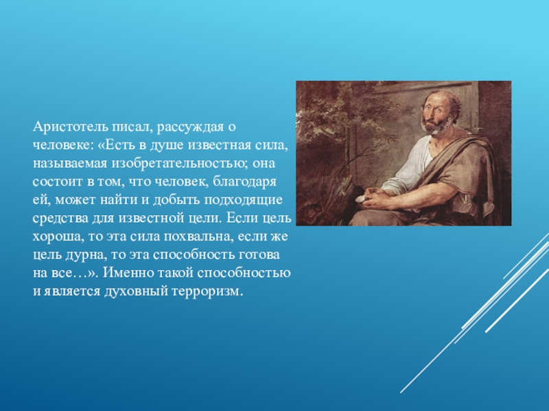 Слайд 24Аристотель писал, рассуждая о человеке: «Есть в душе известная сила, называемая
