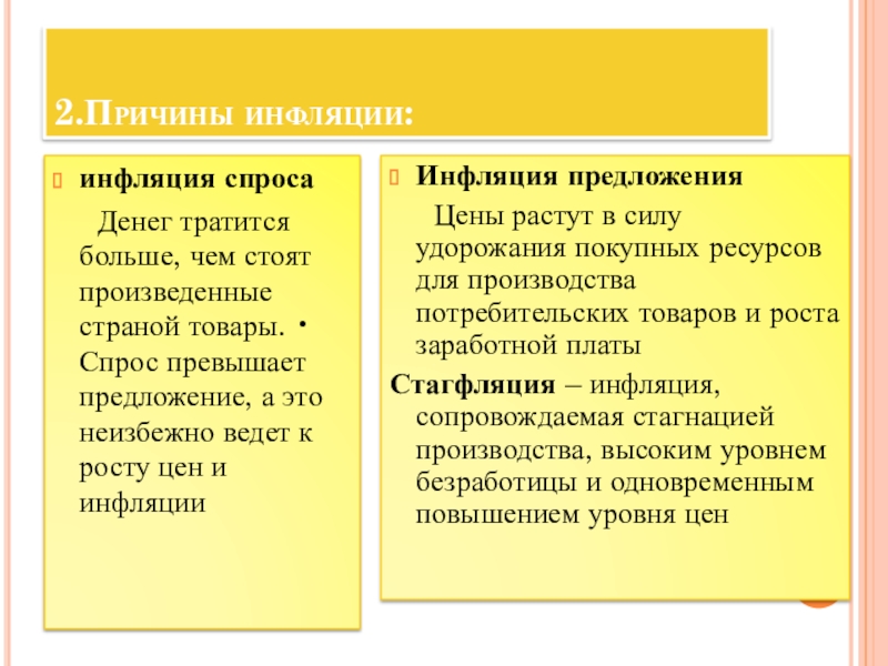 Стагфляция – инфляция, сопровождаемая стагнацией производства, высоким уровнем безработицы и одновременным повышением уровня цен
