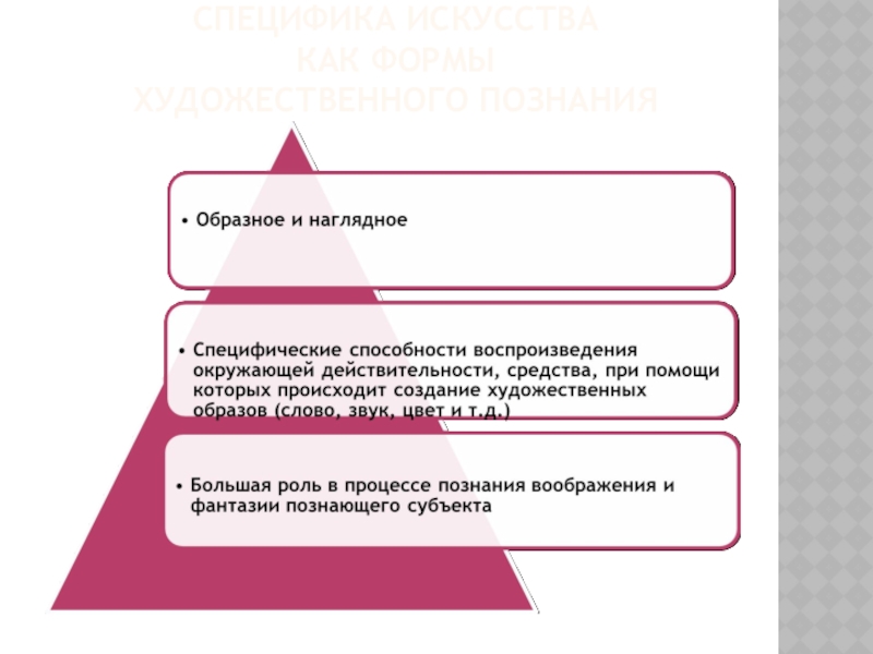 СПЕЦИФИКА ИСКУССТВА  КАК ФОРМЫ  ХУДОЖЕСТВЕННОГО ПОЗНАНИЯ