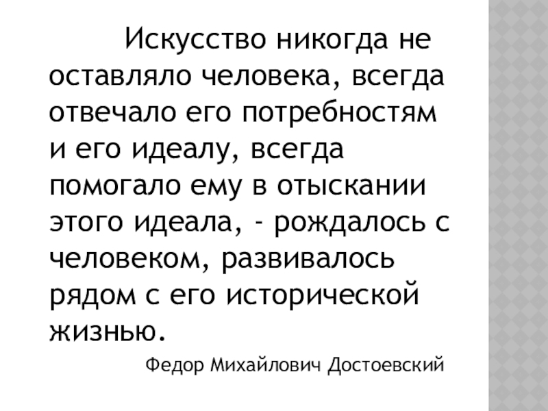 Искусство никогда не оставляло человека, всегда отвечало его потребностям и его идеалу,
