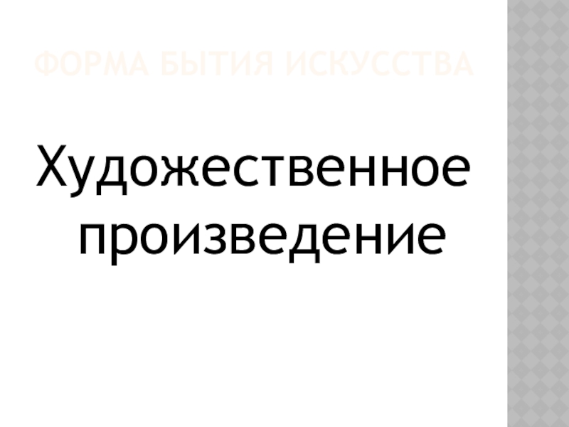 ФОРМА БЫТИЯ ИСКУССТВА Художественное произведение