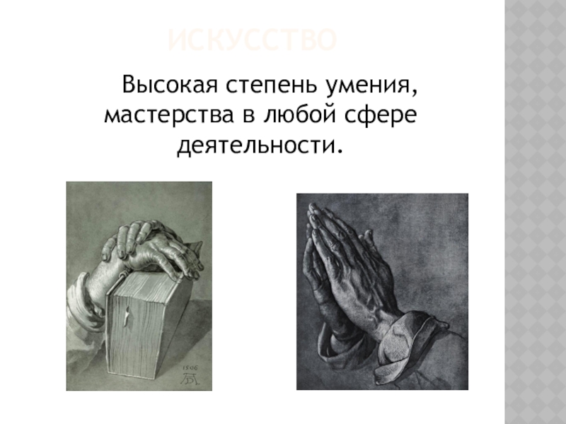 ИСКУССТВО   Высокая степень умения, мастерства в любой сфере деятельности.