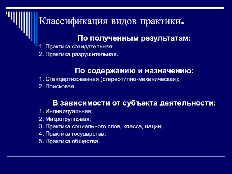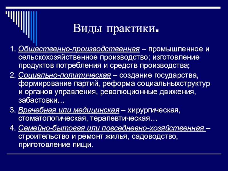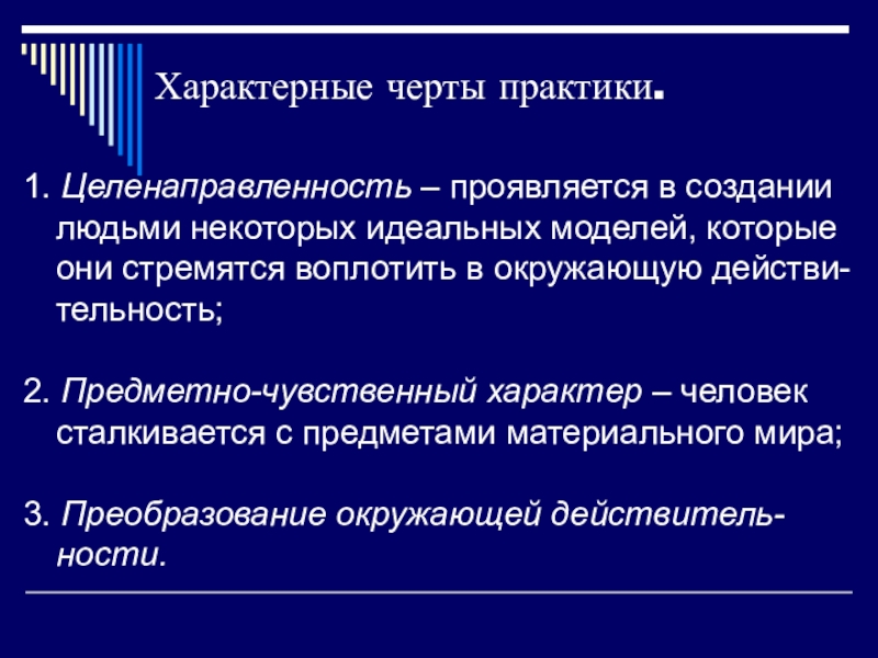 Практика – это целенаправленная предметная деятельность человека, направленная на преобразование действительности.