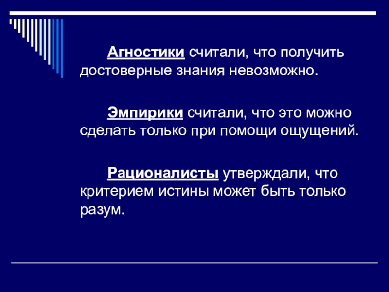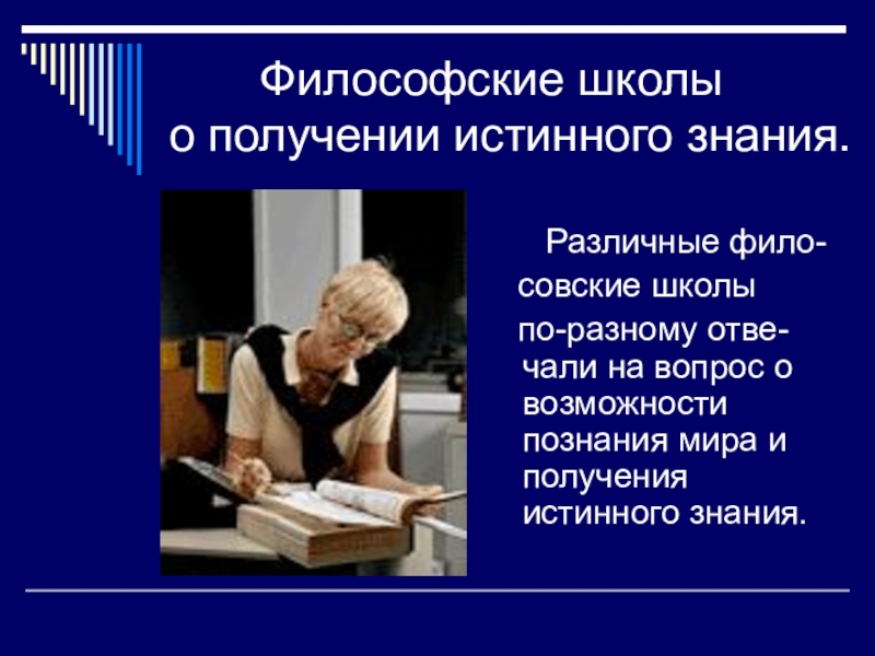 по-разному отве-чали на вопрос о возможности познания мира и получения истинного знания.