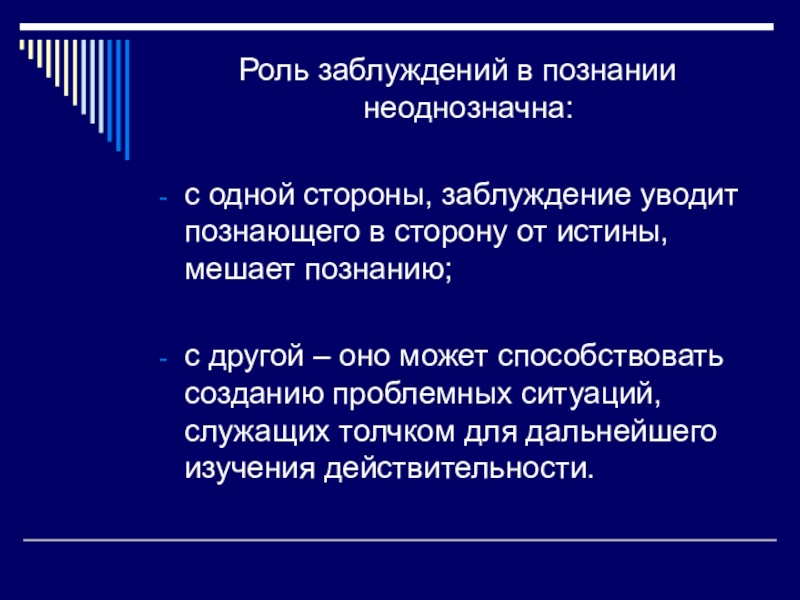 Слайд 17 Роль заблуждений в познании неоднозначна: