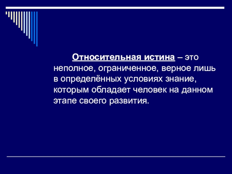 ограниченное, верное лишь в определённых условиях знание, которым обладает человек на данном этапе своего развития.