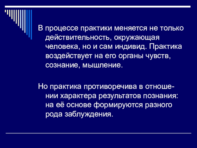 Но практика противоречива в отноше-нии характера результатов познания: на её основе формируются разного рода заблуждения.