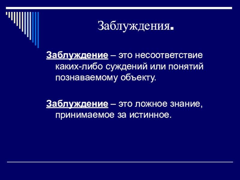 Заблуждение – это несоответствие каких-либо суждений или понятий познаваемому объекту.