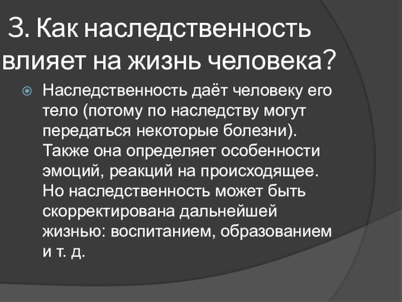 Слайд 6 3. Как наследственность влияет на жизнь человека?