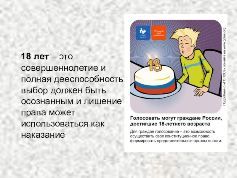 18 лет – это совершеннолетие и полная дееспособность, выбор должен быть осознанным и лишение