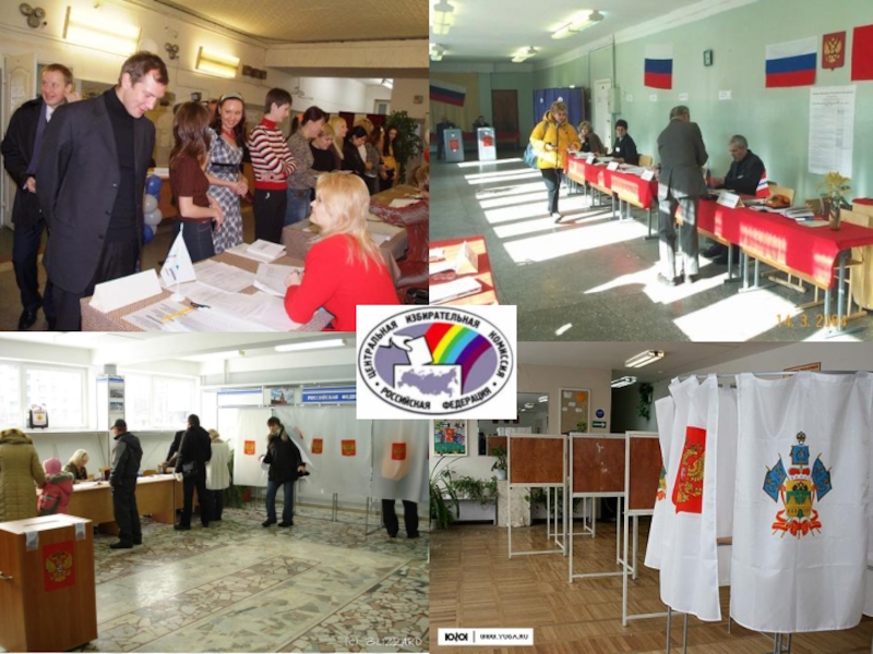 СЛАЙД №8  Принципы избирательного права  Изображение избирательного участка: урна, кабины для голосования, но обязательно со