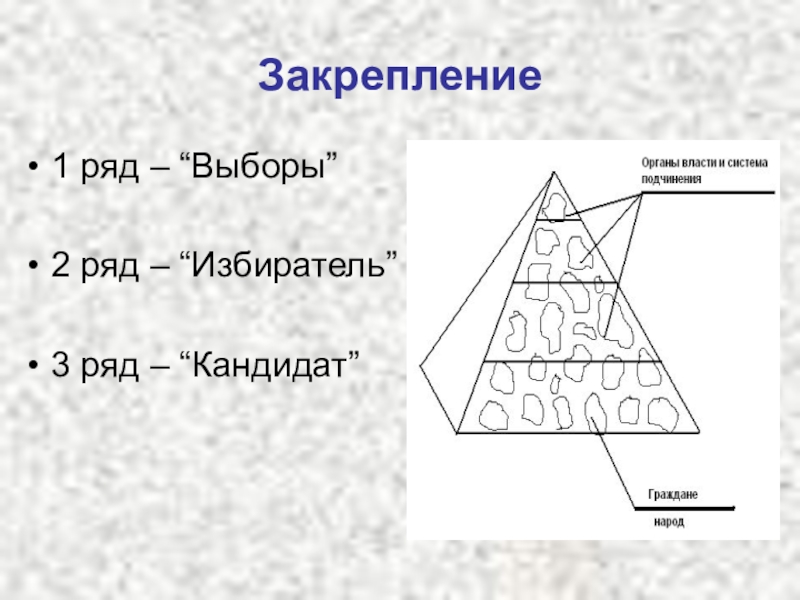 Закрепление 1 ряд – “Выборы” 2 ряд – “Избиратель” 3 ряд – “Кандидат”