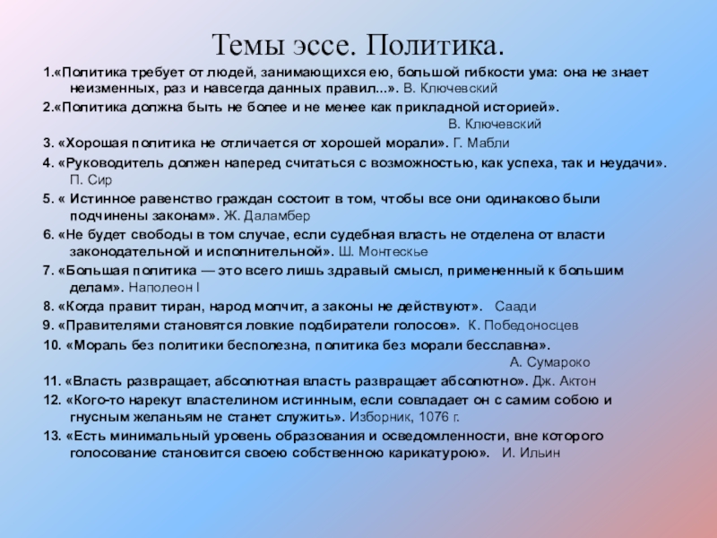 1.«Политика требует от людей, занимающихся ею, большой гибкости ума:
