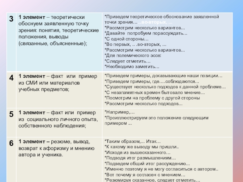 4. Выявить наличие/отсутствие в тексте эссе собственной позиции выпускника по анализируемой проблеме.