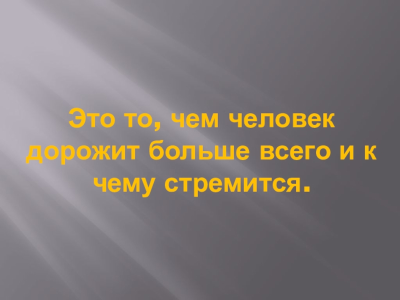 Слайд 13Это то, чем человек дорожит больше всего и к чему стремится.