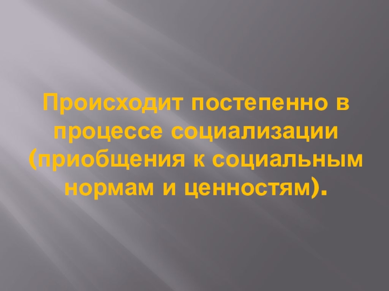 Слайд 23Происходит постепенно в процессе социализации (приобщения к социальным нормам и ценностям).