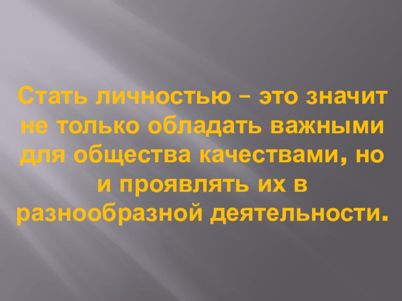 Слайд 10Стать личностью – это значит не только обладать важными для общества