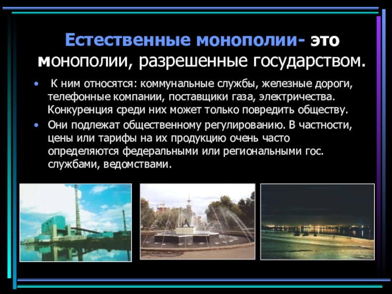 Подобные предприятия относят к естественной (государственной, легальной) монополии.