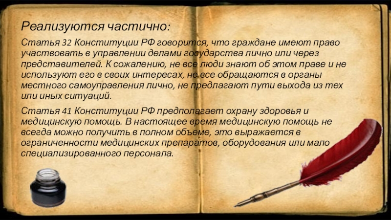 Слайд 7Реализуются частично: