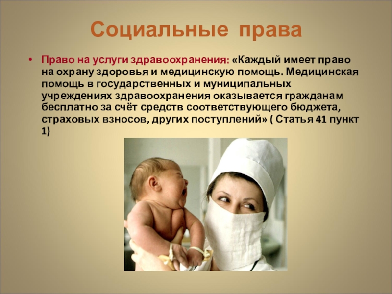 Право на услуги здравоохранения: «Каждый имеет право на охрану здоровья