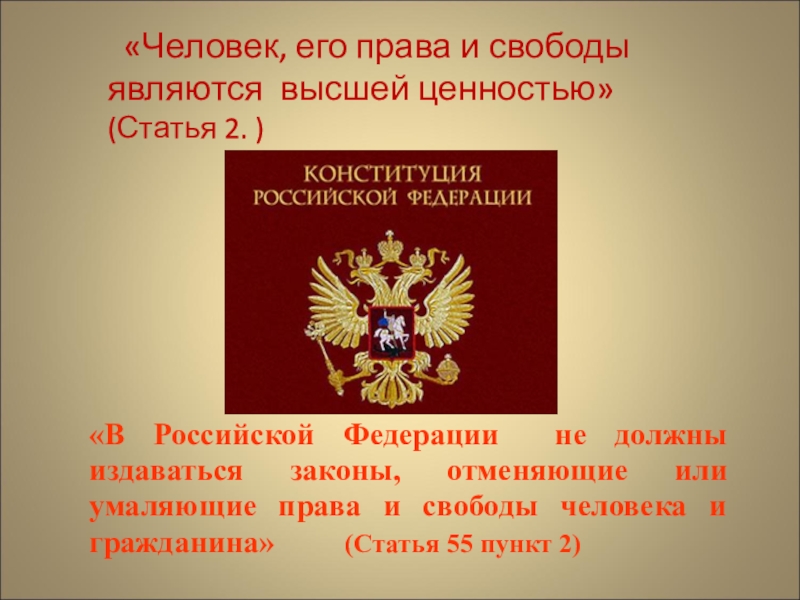 «Человек, его права и свободы являются высшей ценностью» (Статья 2. )