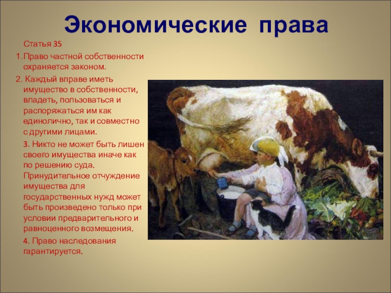 Право на творчество и досуг: «Каждому гарантируется свобода литературного, художественного, научного, технического и других видов творчества, преподавания. интеллектуальная собственность охраняется законом. Каждый имеет право на участие в культурной жизни и пользование учреждениями культуры, на доступ к культурным ценностям»
