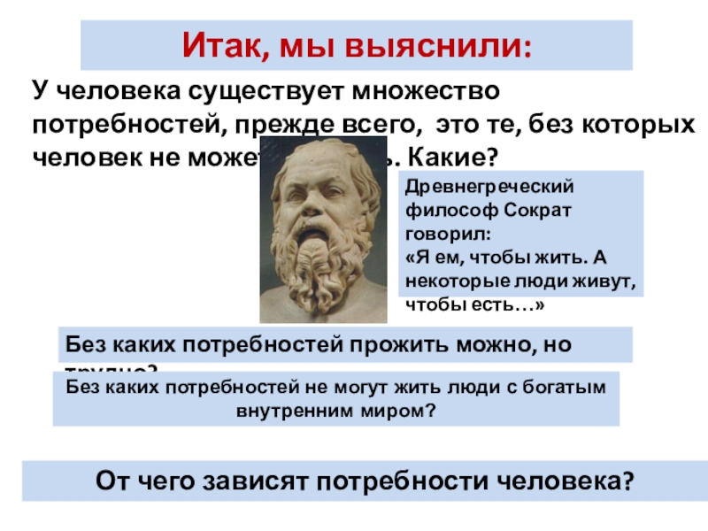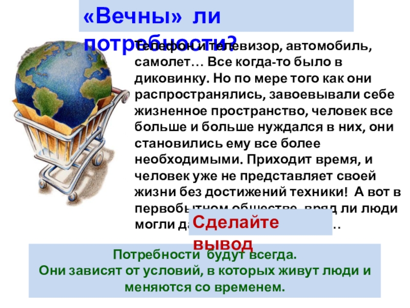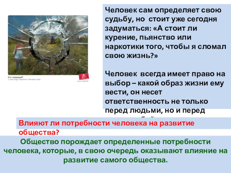 Общество порождает определенные потребности человека, которые, в свою очередь оказывают влияние на развитие самого общества.