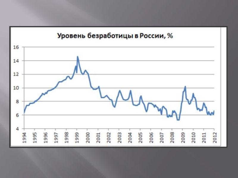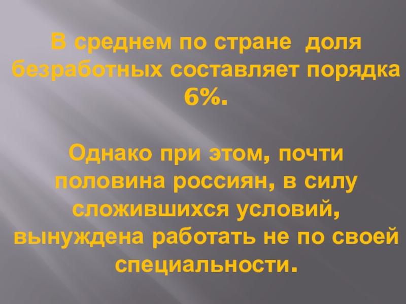 Слайд 24В среднем по стране доля безработных составляет порядка 6%. Однако при