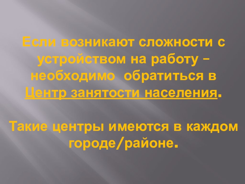 Слайд 16Если возникают сложности с устройством на работу – необходимо обратиться в