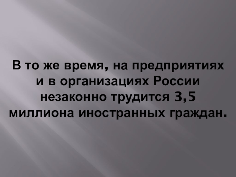 В то же время, на предприятиях и в организациях России незаконно трудится 3,5 миллиона иностранных граждан.