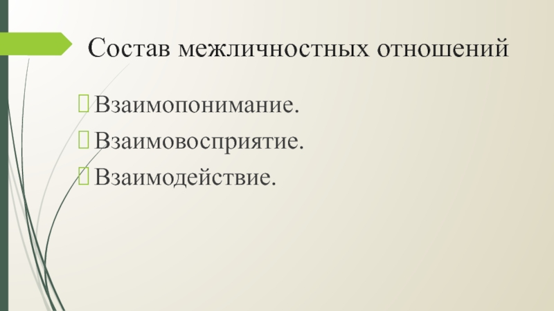Состав межличностных отношенийВзаимопонимание. Взаимовосприятие. Взаимодействие.