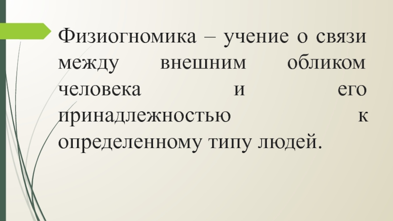 Физиогномика – учение о связи между внешним обликом человека и его принадлежностью к определенному типу людей.