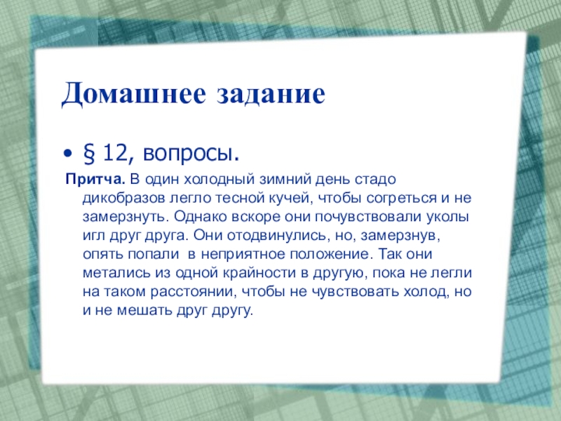 Это сайт презентаций, где можно хранить и обмениваться своими презентациями, докладами, проектами, шаблонами в формате PowerPoint с другими пользователями. Мы помогаем школьникам, студентам, учителям, преподавателям хранить и обмениваться учебными материалами.
