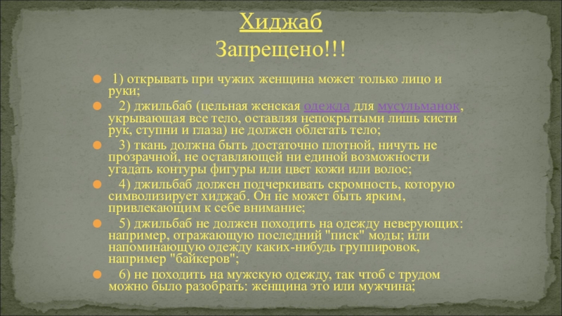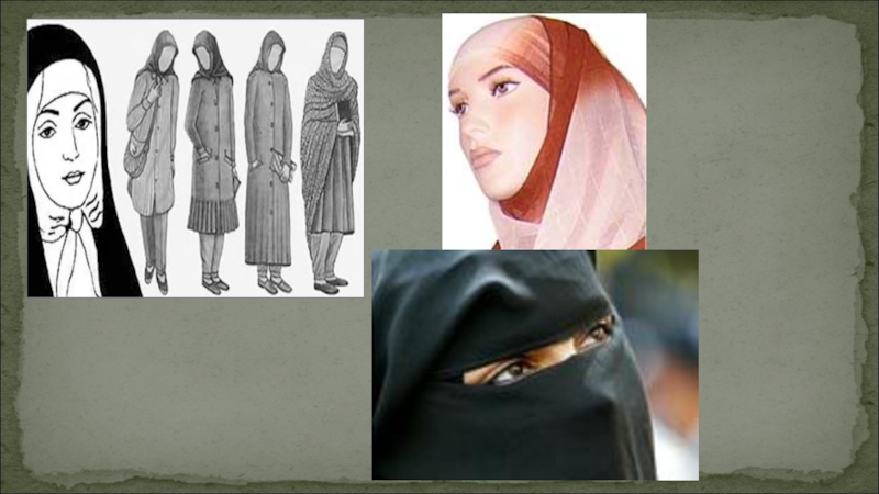 Слайд 55 1) открывать при чужих женщина может только лицо и руки;