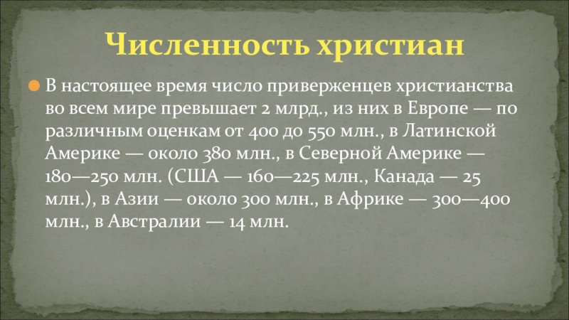 Слайд 41В настоящее время число приверженцев христианства во всем мире превышает 2