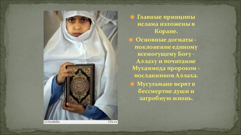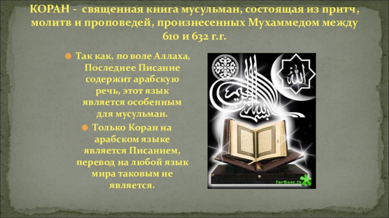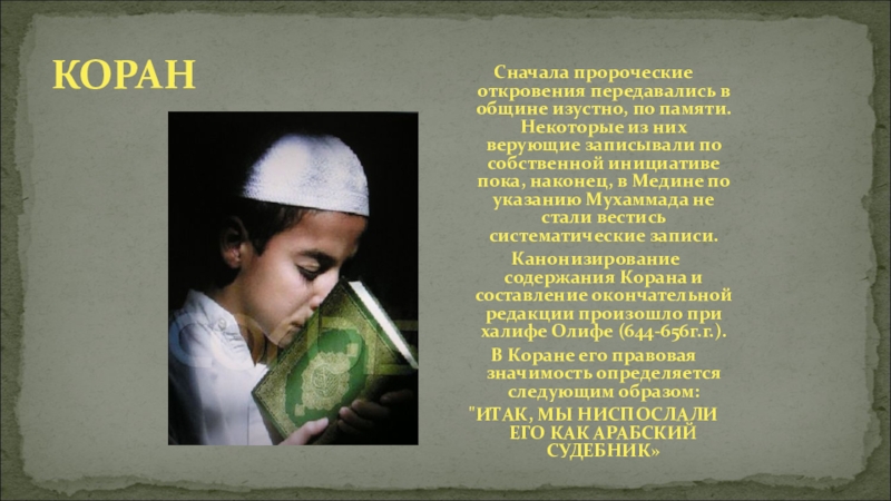 Слайд 47КОРАН - священная книга мусульман, состоящая из притч, молитв и проповедей,