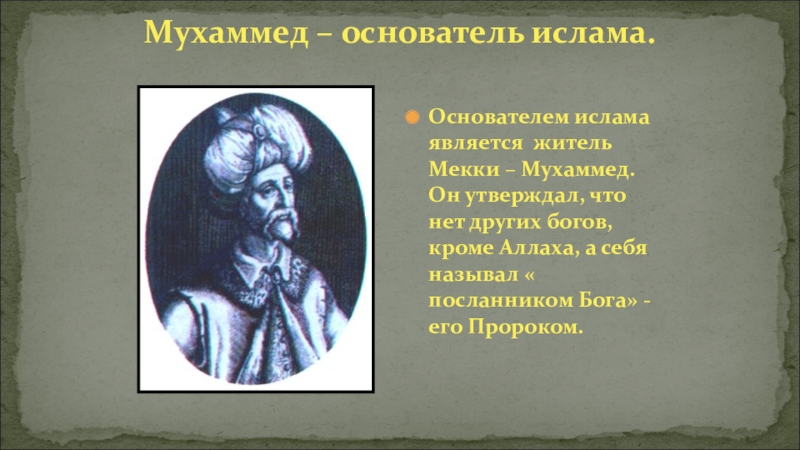 Основателем ислама является житель Мекки – Мухаммед. Он