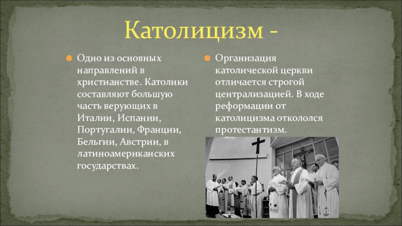 Одно из основных направлений в христианстве. Католики составляют большую часть