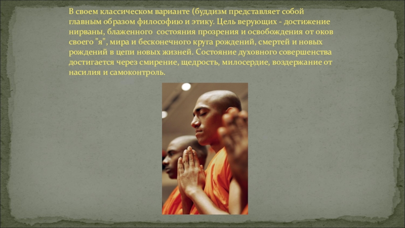 Слайд 31В своем классическом варианте (буддизм представляет собой главным образом философию и