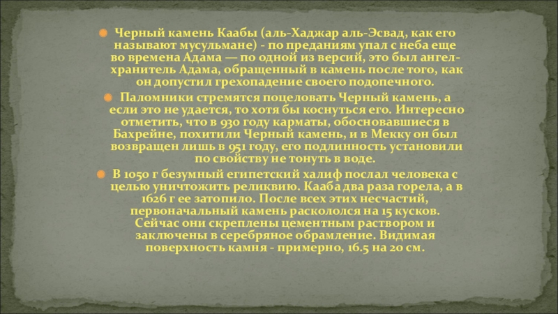 Слайд 51Черный камень Каабы (аль-Хаджар аль-Эсвад, как его называют мусульмане) - по