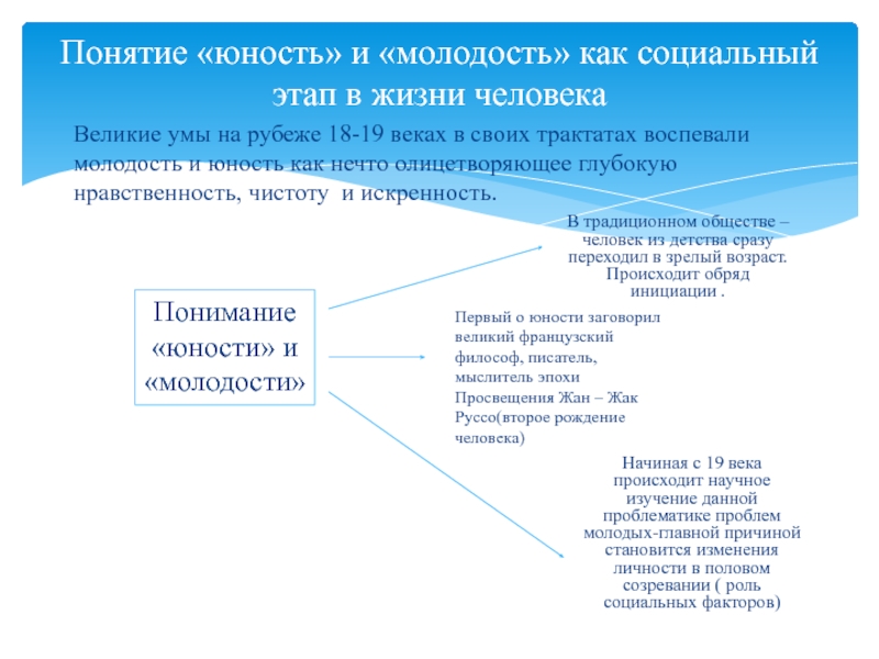 Первый о юности заговорил великий французский философ, писатель, мыслитель эпохи Просвещения Жан – Жак Руссо(второе рождение человека)
