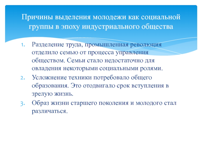 Причины выделения молодежи как социальной группы в эпоху индустриального общества