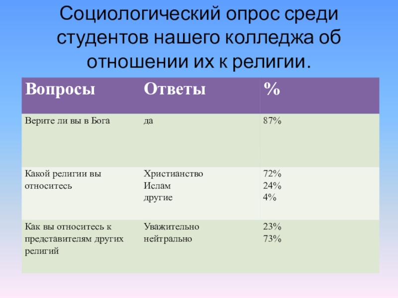 Социологический опрос среди студентов нашего колледжа об отношении их к религии.