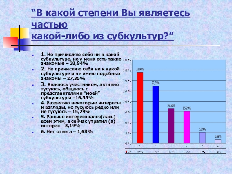 2. Не причисляю себя ни к какой субкультуре и не имею подобных знакомы – 27,35%