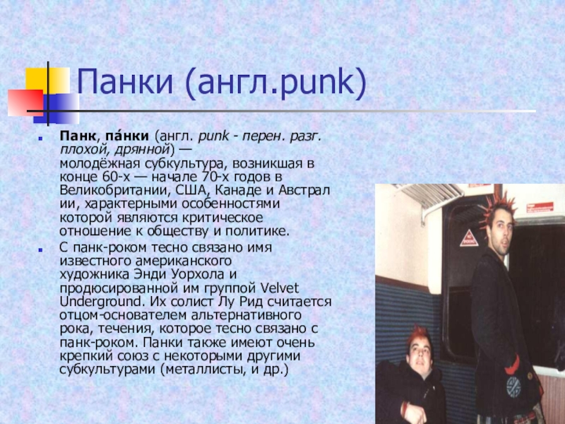 Слайд 6Панки (англ.punk)