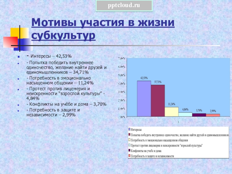 Слайд 16Мотивы участия в жизни субкультур